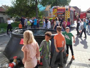 Die Mitglieder der Jugendfeuerwehr und Ihre Betreuer hatten sich eine Menge Arbeit gemacht, um den kleinen und großen Gästen einen interessanten Nachmittag zu bieten. An 6 Stationen konnten sich die Jugendlichen über die Aufgaben der Feuerwehr informieren und auch selbst Hand anlegen. So mußte an der Station „Erste Hilfe“ ein richtiger Notruf abgesetzt werden und eine verletzte Person verbunden werden. Mittels Hebekissen konnten die angehende Feuerwehrler dann unser altes Löschgruppenfahrzeug anheben. Beim Feuerlöschtrainer wurde die Explosion von Spraydosen simuliert, die Jugendlichen mußten mit Feuerlöschern einen Brand bekämpfen und beim Löschen mit der Kübelspritze ihre Treffsicherheit unter Beweis stellen. Die Atemschutzgruppe erläuterte Gerätschaft und Aufgaben eines Atemschutzgeräteträgers, bei der Abteilung Absturzsicherung konnten selbst die Kleinsten mittels Flaschenzug verletzte Personen aus einer Grube retten. Weiteres Highlight war auch der Löschaufbau mit unserem neuen HLF 20/16, bei dem aus dem 5.000 Liter Löschbassin das Wasser angesaugt wurde und über den Wasserwerfer wieder in einer großen Fontäne abgegeben wurde. Wir hoffen es war für unsere Gäste ein interessanter Nachmittag und würden uns freuen , wenn wir den ein oder anderen bei unserer nächsten Übung am 05. Juni 2019 um 18 Uhr als neues Mitglied der Jugendfeuerwehr Penzing begrüssen könnten.