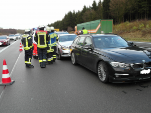 Gemäß Auskunft der Leitstelle wurde der Unfall im Bereich der Ausfahrt Landsberg-Nord gemeldet. Wie sich jedoch rausstellte, mussten wir noch einige Kilometer weiterfahren. Die Unfallstelle befand sich auf der linken Spur, vier PKW fuhren aufeinander auf. Da zum Glück kein Personenschaden entstanden ist, sperrten wir die beiden Fahrstreifen und leiteten den Verkehr über den Standstreifen an der Unfallstelle vorbei.