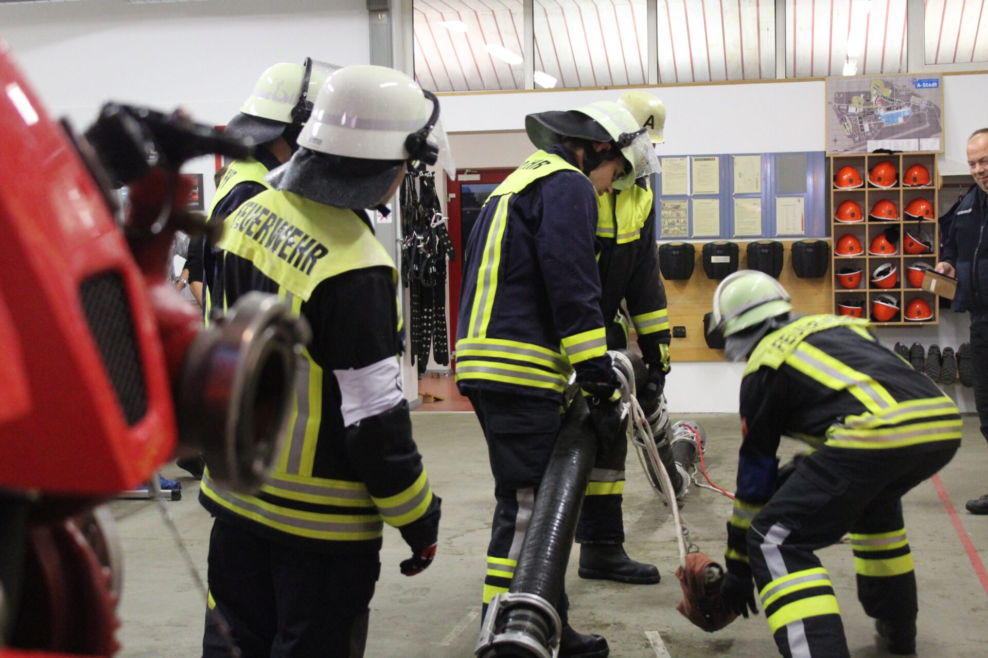 Unter Aufsicht der Kreisbrandmeister Bernhard Glatz, Thomas Schmid und Bernhard Sießmeir mussten die Teilnehmer der Gruppe zuerst Knoten und Stiche zeigen. Im Anschluss führten sie auf Zeit den Löschaufbau, gefolgt vom Saugschlauchkuppeln durch.
