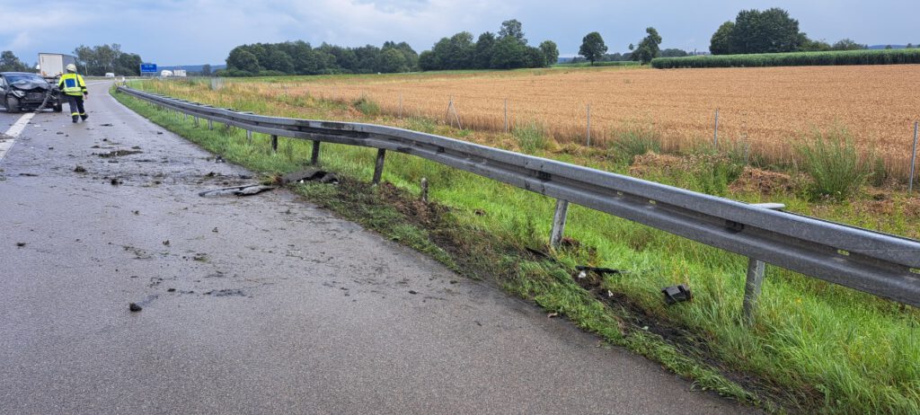 Am Montagnachmittag wurden wir zu einem Verkehrsunfall auf der Autobahn gerufen. Ein PKW war alleinbeteiligt verunfallt. Wir sicherten die Einsatzstelle ab, nach Versorgung des Fahrers und der Unfallaufnahme durch die Polizei unterstützten wir den Abschleppdienst bei den Aufräumarbeiten.