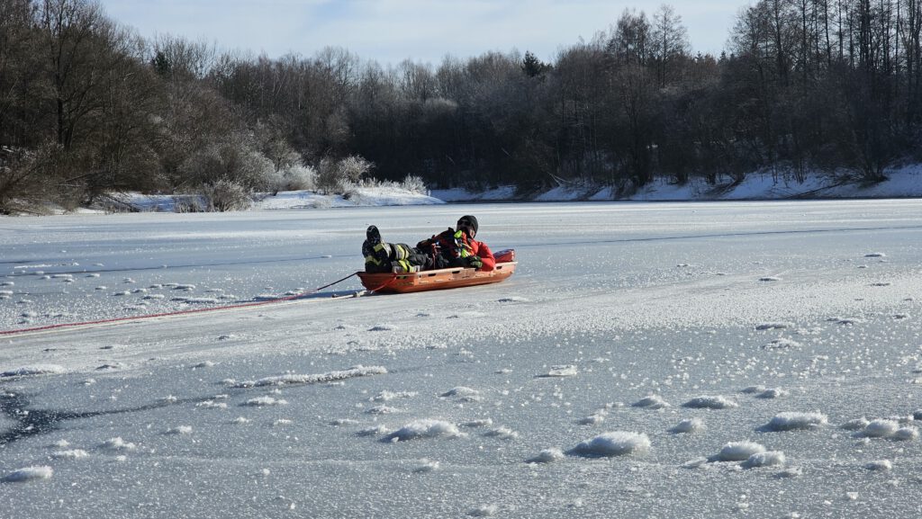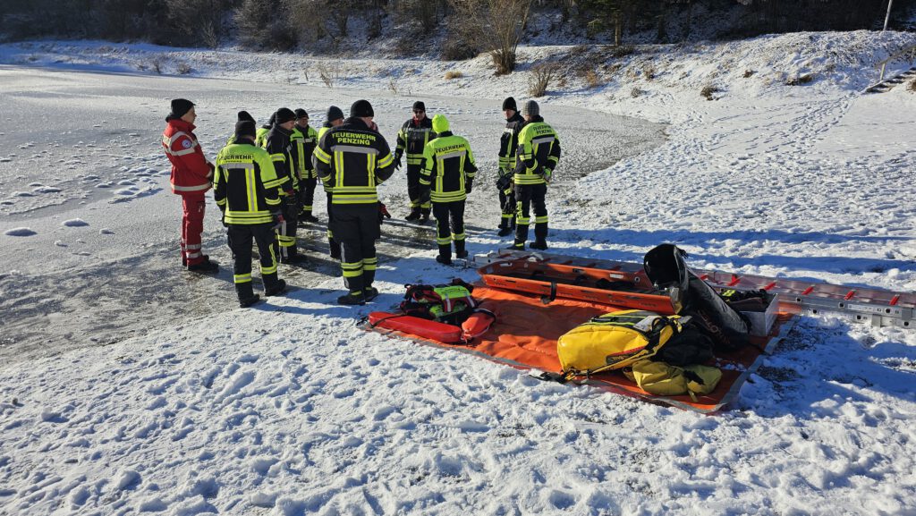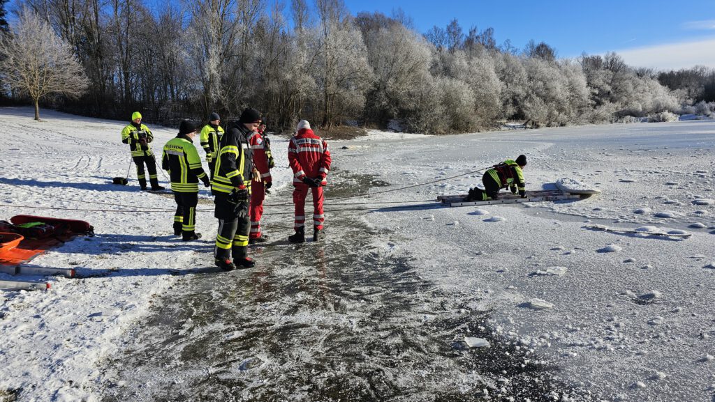 Am dieswöchigen Feiertag führten wir gemeinsam mit der Wasserwacht Penzing eine Eisrettungsübung am Penzinger Baggersee durch.