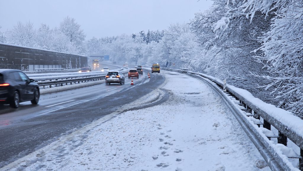 Ein LKW war witterungsbedingt ins Schleudern geraten, mehrfach in der Leitplanke eingeschlagen und auf der rechten Fahrspur beziehungsweise dem Standstreifen zum Stehen gekommen, wodurch er diese versperrte.